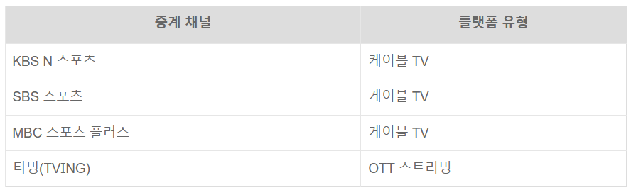 또한, 케이블 스포츠 채널에서도 경기를 시청할 수 있습니다.